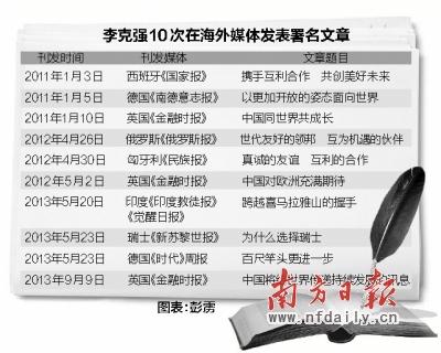 今年5月,李克强以总理身份首访印度、巴基斯坦、瑞士、德国四国,在其中三国的报刊上都发表了署名文章。