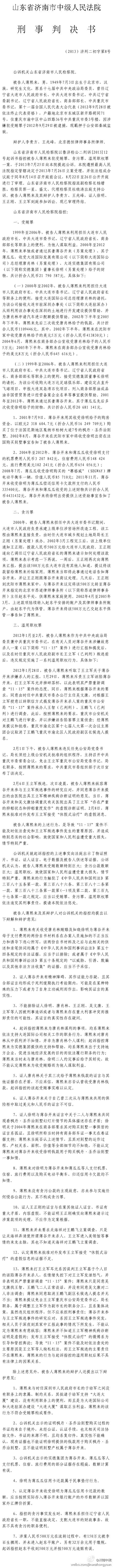 薄熙来受贿、贪污、滥用职权案判决书全文 查看下一页