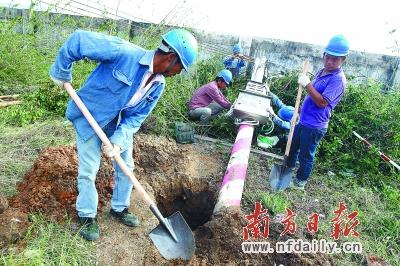 昨日,汕尾东涌镇供电部门在加紧抢修。李细华 张由琼 摄