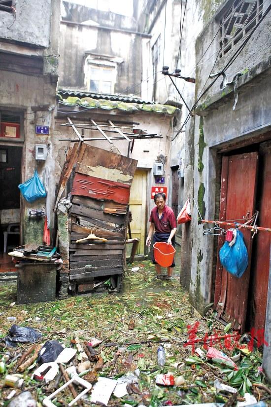 汕头市乌桥岛上居民们忙着清理收拾被水浸泡的家 羊城晚报记者 黄巍俊 摄