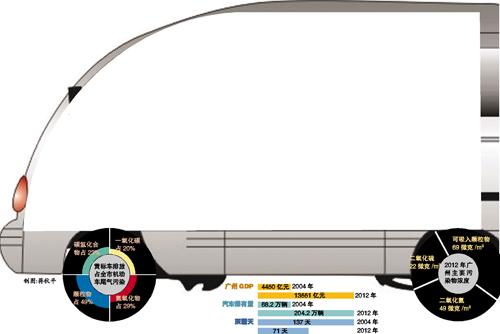 尽管今年广州经济快速增长、车辆猛增,城市空气质量却得到控制。市政府副秘书长周灵在汇报中称,从2004年到2012年,广州市的GDP已从4450亿元增至13551亿元,汽车保有量也从68.2万辆猛增到204.2万辆。但从2004年至今,各项污染物排放量持续减少,空气质量改善。