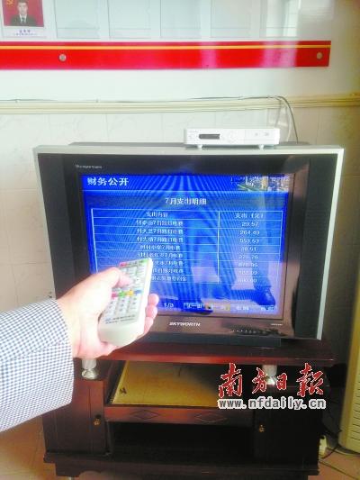 8月16日,枫桥镇枫源村的老骆拨动手中的电视机遥控器,电视画面上,是村“两委”7月份的账单,每一项都记录得十分详细。老骆告诉记者,每个月的28号,村委都会将村务进行公开,村民在数字电视上就可以方便查阅。“如果有什么猫腻,一旦被发现,肯定会炸开锅。”