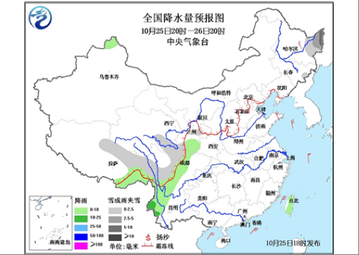 另外,预计今天夜间到28日,青藏高原中东部、西南地区将再次遭遇阴雨雪天气。其中,今天夜间到明天白天,青藏高原中部和东部等地有小到中雨(雪)或雨夹雪;四川中西部、云南西部、西藏东南部等地有小到中雨;另外,黑龙江东北部还将有大雪天气。