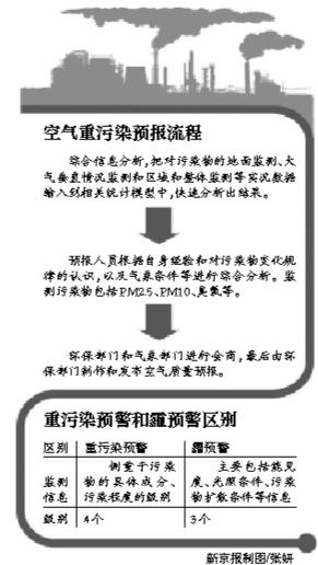 然后,环保部门跟气象部门进行会商,最后由环保部门制作和发布空气质量预报。