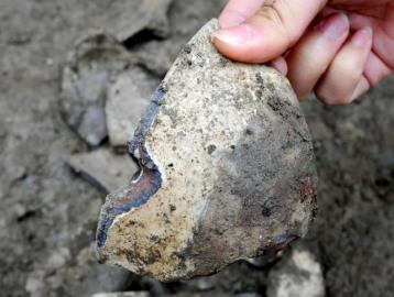 考古现场,清理出宋代碗碎片。