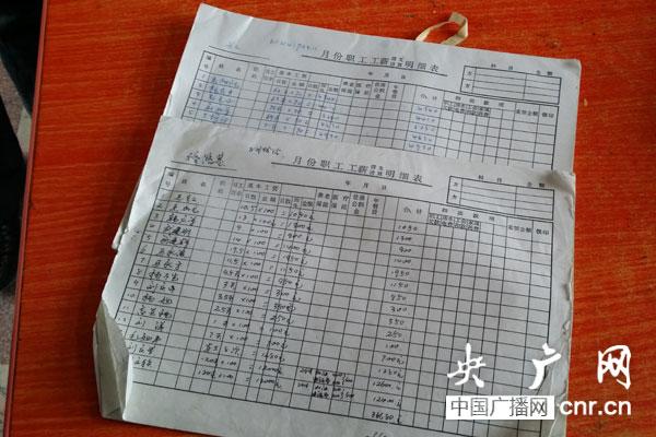 腰达房村60多人的应付工资单(央广网记者 栾红 摄)