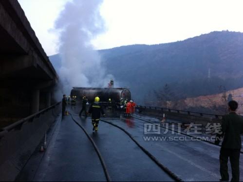 京昆高速一油罐发生爆炸3死1伤 已临时封路(图)