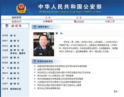 截至昨晚11时,公安部网站上“领导信息”一栏已没有李东生的链接。此前,晚10时许,公安部网站仍未进行更新。