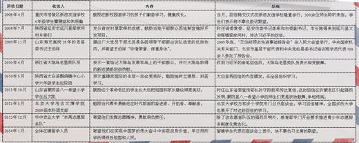 从话题来看,习近平的信中涉及到“中国梦”、爱国、基层党建、农村变化、重建家园、志愿者精神、为官之道等多个角度,一般都是对来信者汇报的情况予以肯定后进行阐述。