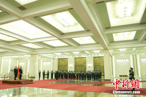国务院总理李克强12日下午在人民大会堂北大厅举行欢迎仪式,欢迎来华进行正式访问的匈牙利总理欧尔班。欧尔班是中国农历新年之际迎来的第一位外国政府首脑。中新社 盛佳鹏 摄