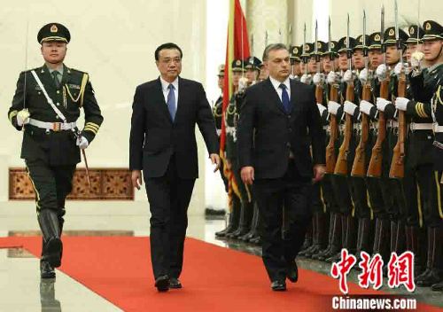 国务院总理李克强12日下午在人民大会堂北大厅举行欢迎仪式,欢迎来华进行正式访问的匈牙利总理欧尔班。欧尔班是中国农历新年之际迎来的第一位外国政府首脑。