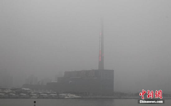 2月24日,上海遭遇雾霾天,世博建筑在雾霾中忽隐忽现。汤彦俊 摄