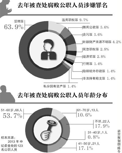 根据中纪委披露的去年查处的123名公职人员详细信息,蓝皮书简要分析了腐败案件的基本特点。