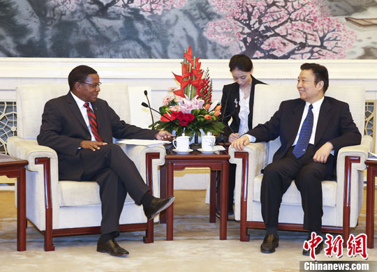中新社北京2月25日电 (记者 余湛奕)中国国家副主席李源潮25日在北京会见了坦桑尼亚外长门贝。