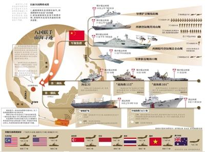 4艘军舰赶赴失联海域,包括登陆舰;“中国海警3411”和“泰顺海”轮已到达;另有7国合力救援