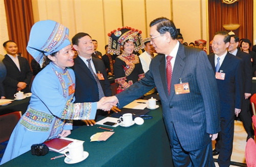 中共中央政治局常委、全国人大常委会委员长张德江参加广西代表团审议