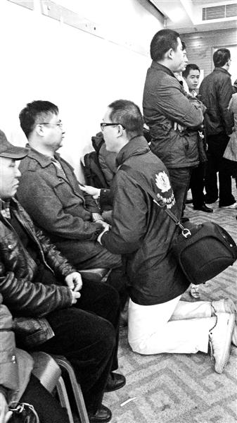 志愿者跪在家属旁供图/《法治晚报》记者 刘汩