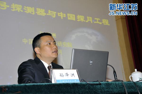 嫦娥三号任务探测器系统总设计师孙泽洲在做报告。