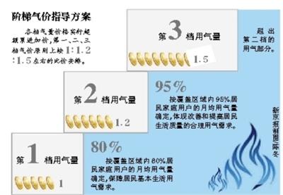 根据指导意见,居民用气将划分为三档,各档具体气量和气价由各地结合当地实际确定,2015年底前所有已通气城市均应建立起居民生活用气阶梯价格制度。