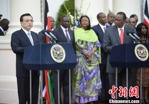 中新网内罗毕5月10日电(记者 郭金超) 10日,李克强在与肯尼亚总统共见记者时说,贸易状况虽由市场决定,但中国政府将从两方面改善目前不平衡现状:一是为肯商品在中国推销、推介提供便利;二是鼓励中国企业扩大对肯制造业领域投资,积极参与肯工业园区建设,以提高肯加工能力,增加肯产品出口竞争力。