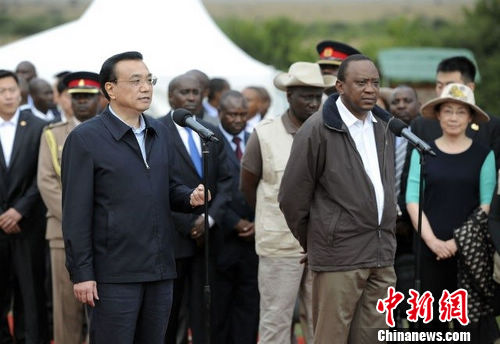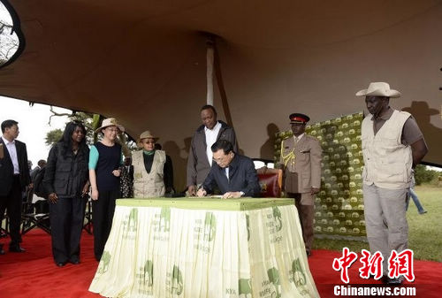 中新网内罗毕5月10日电(记者 郭金超)李克强10日在肯尼亚总统肯雅塔和副总统鲁托陪同下参观内罗毕国家公园焚烧象牙纪念地并发表讲话。李克强表示将加强同肯尼亚等国在保护生态和野生动物方面的合作,向国际社会传递这样的理念,即保护野生动物就是保护我们共有的家园,保护生物多样性就是保护地球的丰富多彩。