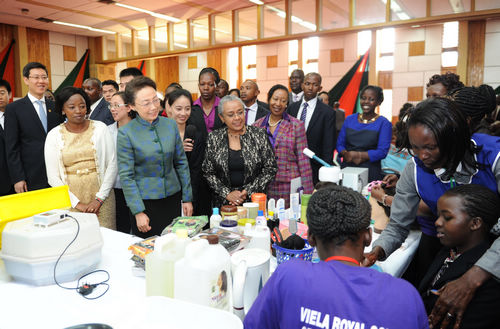 中新网内罗毕5月10日电(记者 郭金超)10日,李克强总理夫人程虹在肯尼亚总统夫人和副总统夫人的陪同下参观了快乐妇女组织。该组织用小额贷款支持农村妇女种植蔬菜、制作手工艺品等以提高家庭收入。程虹与受益于该组织的一些妇女交流,赞扬她们自食其力、补贴家用,还现场购买手工艺品以示支持。