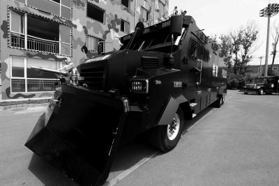 北京百余警力反恐拉练 30余特警车辆集中亮相(图)