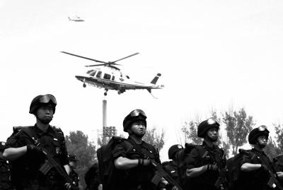 反恐拉练中全副武装的特警。京华时报记者欧阳晓菲摄