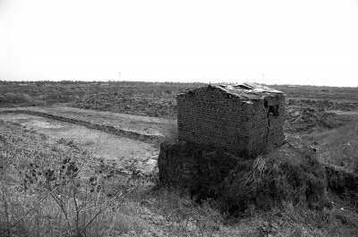 挖土点集中在南小份,留下大大小小的坑,浅的为1到2米,深的则达到3到5米多。有的坑内灌满了水,水面浮着养鱼用的增氧设备。一处深坑旁,矗立着一间破旧的守苇屋,屋子已开裂,宛如一座孤岛。