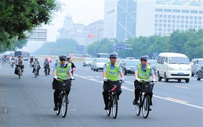 从今年3月起,北京市交管部门开始推行领导干部骑行巡逻的警务机制。