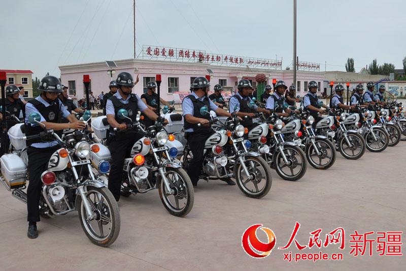 6月16日,新疆温宿县古勒阿瓦提乡12位农民自发捐款26万购买22辆摩托车赠乡政府维稳队伍。