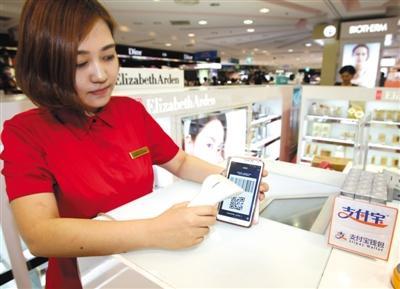 6月26日,韩国首尔的乐天免税店工作人员向记者展示线下支付宝付款的方法。十年前,中国人出国旅游必不可少的准备之一就是换外汇。如今,中国游客已基本能在韩国实现用人民币“无障碍”购物。目前韩国的绝大部分商户都可以接受有中国银联标识的人民币信用卡。 新华社发
