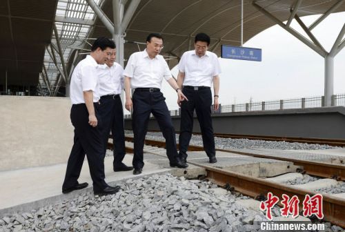中新网长沙7月3日电(记者 郭金超) 3日上午,李克强总理在湖南长沙考察沪昆高铁长沙南站施工现场。李克强说,这条铁路建成后将是我国东西向里程最长的铁路。它不仅会缩短东西部的地理距离,也将拉近沿途百姓的心理距离,带动沿线发展,促进社会公平。