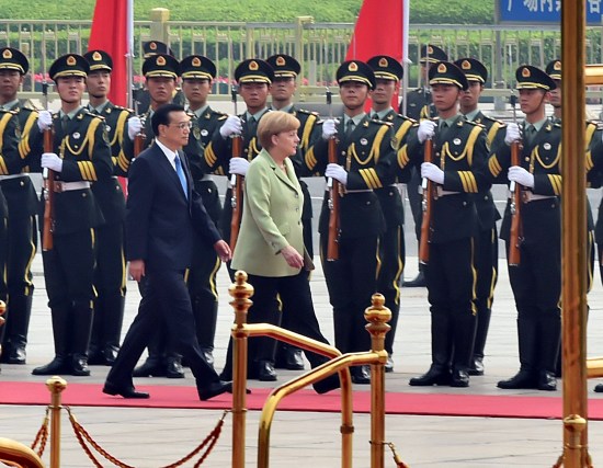 国务院总理李克强在人民大会堂东门外广场举行仪式,欢迎来华进行正式访问的德国总理安格拉·默克尔。