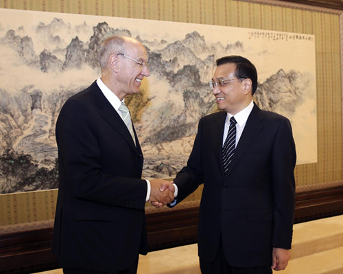 国务院总理李克强11日在中南海紫光阁会见世界知识产权组织总干事高锐。