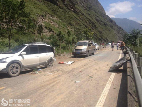 今(17)日15点30分,网友大德如日报料称:下午2点左右,茂县石大关发生山体滑坡,有飞石砸中车辆,一中年女子被砸中头部,另有旅游大巴车被砸。沿途近30辆大小车辆约200人受困,具体伤亡不明,消防已出警救援,被围困者中有德阳援助阿坝的医疗专家组。