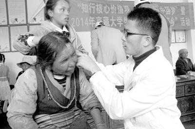 西 藏 藏 医 学 院团 委 携 手 对 口 支 援院 校 北 京 中 医 药 大学 “ 三 下 乡 ” 团 队近 日 来 到 拉 萨 市 曲水 县 敬 老 院 开 展 义诊 活 动 , 为 老 人 们把 脉 问 诊 , 对 于 诊断 出 来 的 常 见 疾 病采 用 针 灸 火 疗 , 按摩 拔 罐 等 方 法 进 行一 些 基 本 治 疗 , 藏医 学 院 还 向 老 人 们捐 赠 了 一 些 基 本 藏药。
