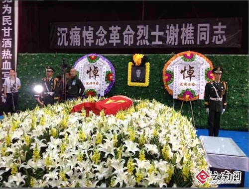 云南鲁甸6.5级地震牵动着全国人民的心,来自福建宁德的边防战士谢樵用年轻的生命谱写了一曲抗震救灾的生命壮歌,年仅24岁的他,为营救受灾群众,英勇献身。8月12日上午10时,谢樵的追悼会在昆明市殡仪馆(跑马山)举行,数百名群众来到现场,送谢樵最后一程。