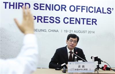 昨日,中国APEC高官谈践出席媒体吹风会。中新社发