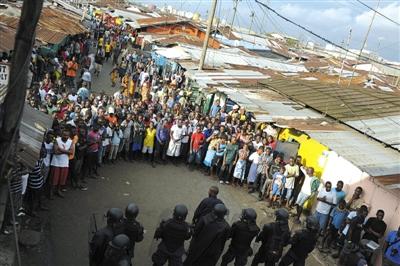 8月20日,利比里亚蒙罗维亚,安全部队对一个贫民窟采取了强制隔离的措施以抑制埃博拉病毒的扩散。