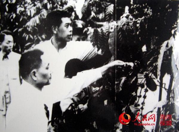 继而,邓小平在时任兴隆华侨农场党委书记张奋、场长詹力之和时任万宁县委书记何如伟、副书记黄子桂等人随同下,先后视察和参观了兴隆农场咖啡园、胡椒园、可可园和热带植物试验站等。兴隆华侨农场咖啡园有几亩地,长势旺盛,邓小平望着一片片、一簇簇长势喜人的咖啡,十分高兴。他步至一株茂盛的咖啡丛跟前,