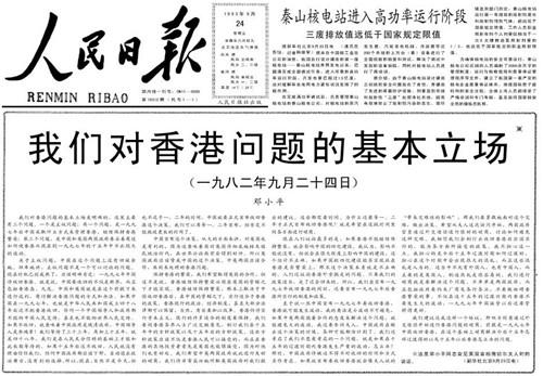 人民日报 1993.09.24第1版《我们对香港问题的基本立场》