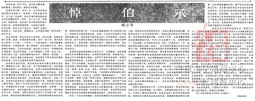 《悼伯承》一文是邓小平发表在《人民日报》上的唯一一篇私人名义的纪念文章,从中可以看到邓小平另一面的个人文字风格。文中以深刻的怀念之情回顾了与刘伯承共事的点滴。邓小平回忆说:“我们一起工作,是1938年在八路军一二九师,一个师长,一个政治委员,以后在晋冀鲁豫野战军、中原野战军、第二野战军,前后共事十三年,两人感情非常融洽,工作非常协调。我比他小十多岁,性格爱好也不尽相同,但合作得很好。人们习惯地把‘刘邓’连在一起,在我们两人心里,也觉得彼此难以分开。”