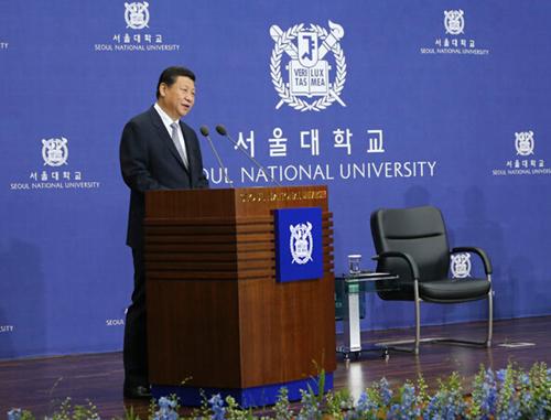 2014年7月4日,习近平主席在韩国国立首尔大学发表题为《共创中韩合作未来 同襄亚洲振兴繁荣》的重要演讲。