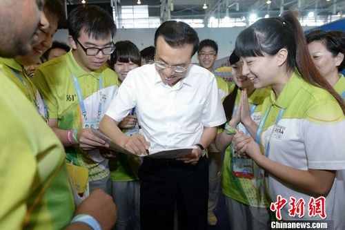 李克强与青奥志愿者相约:晚上我做你们的观众