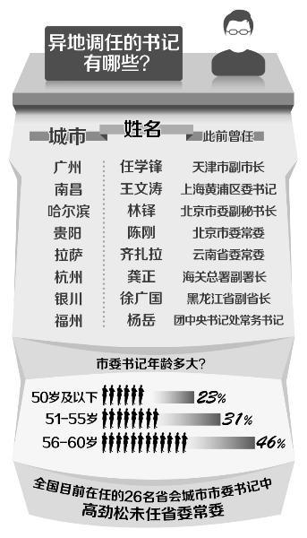 据《法制晚报》记者统计发现,这种异地调任干部任职省会城市市委书记的情况在其他7省份也存在。