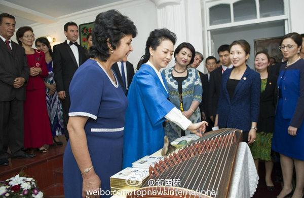 彭丽媛参观塔吉克斯坦国立音乐学院 轻拨琴弦(图)