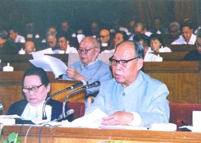 1980年9月2日,彭真在五届全国人大三次会议上作常委会工作报告。 全国人大常委会办公厅新闻局提供