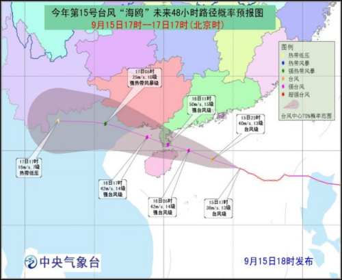 “海鸥”16日白天登陆华南 气象局启动Ⅱ级响应