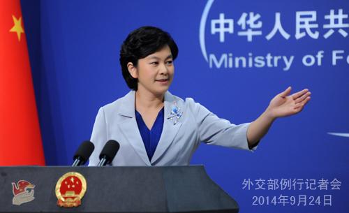 中新网9月24日电 外交部发言人华春莹24日主持例行记者会,就朝鲜扣押中国渔船、伊力哈木案、印度火星探测器成功入轨等答记者问。